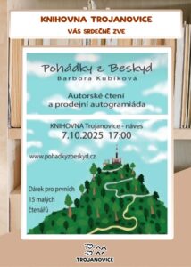Pohádky z Beskyd – autorské čtení z nové knížky v trojanovické knihovně od 17:00 hodin + Přidat do Google kalendáře + iCal / Outlook export Datum Říj 07 2025 Expired! Čas 17:00 - 21:00 Sdílet tuto událost