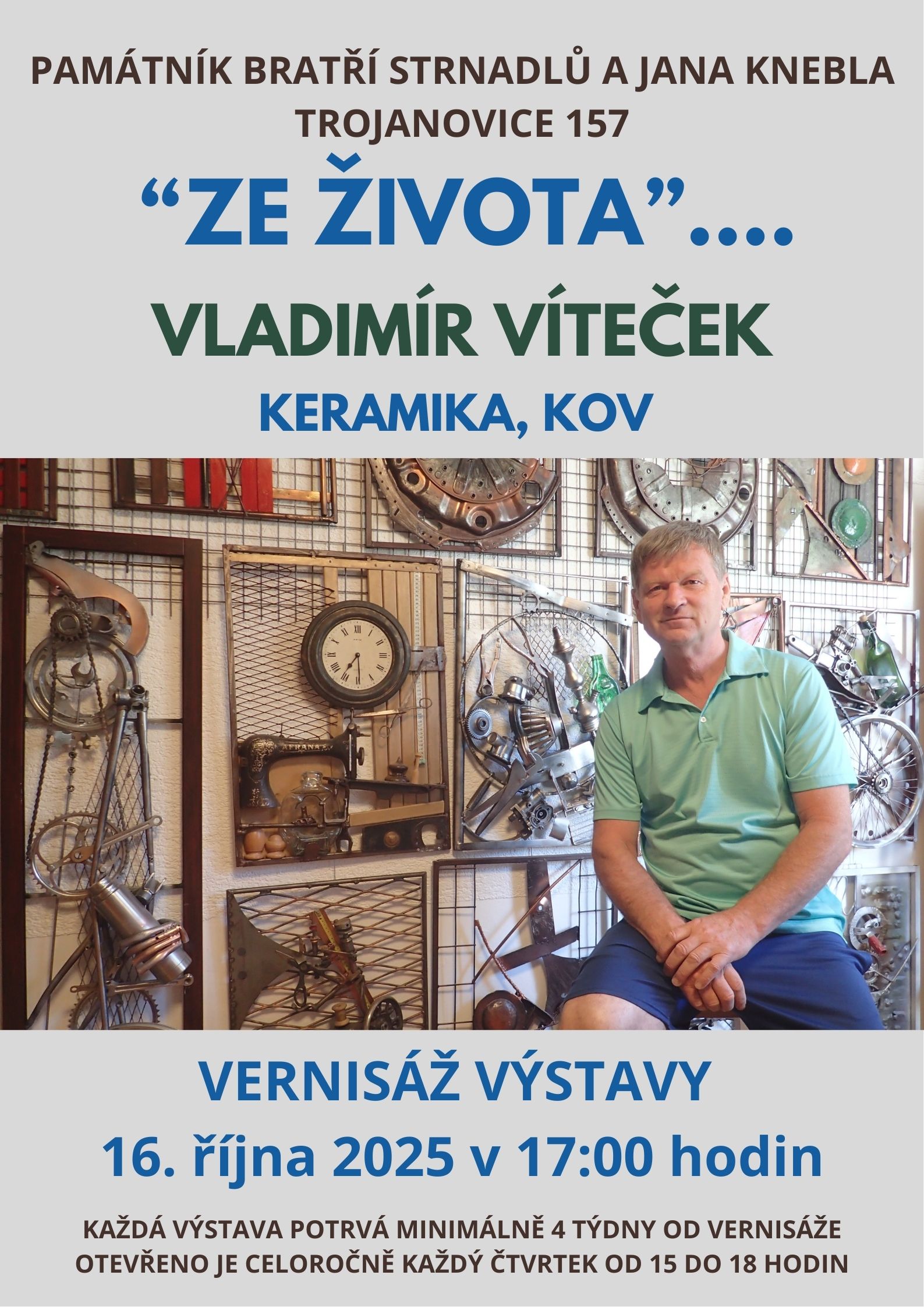 Vernisáž výstavy Vladimíra Vítečka “Ze života” …. keramika, kov + Přidat do Google kalendáře + iCal / Outlook export Datum Říj 16 2025 Expired! Čas 17:00 - 21:00 Sdílet tuto událost