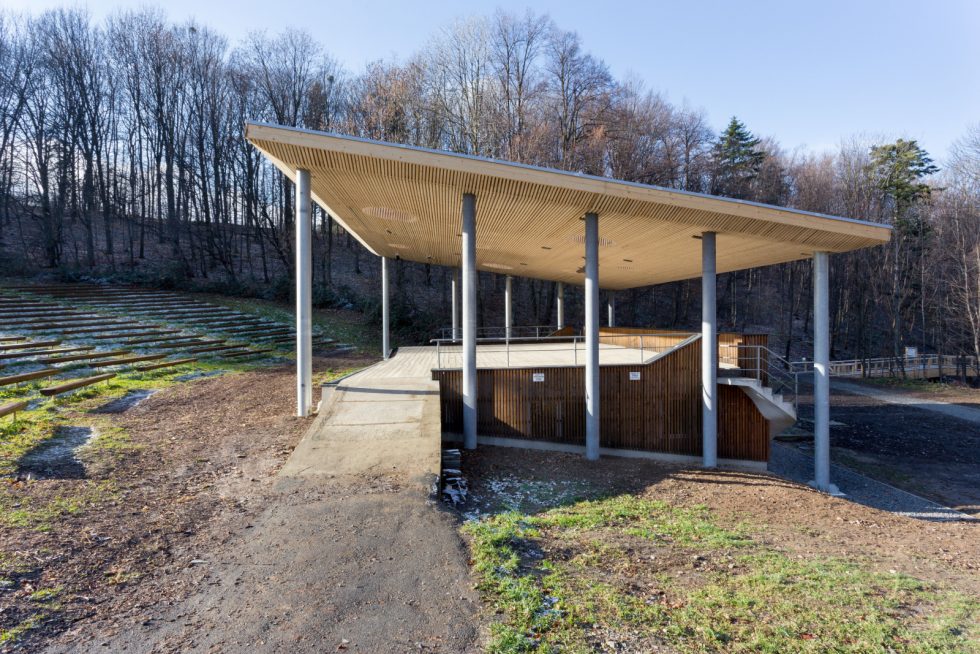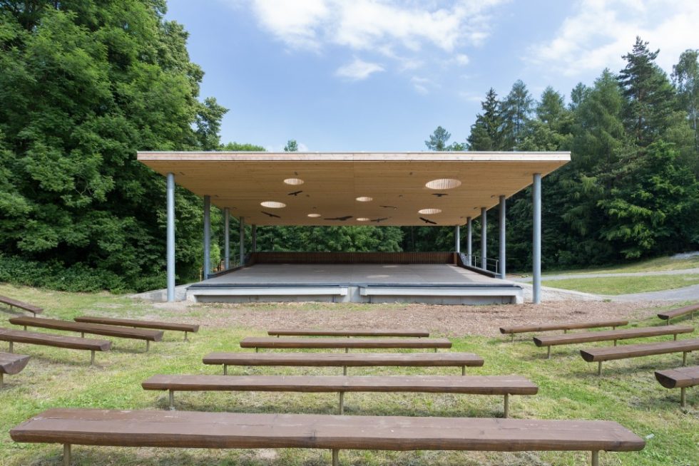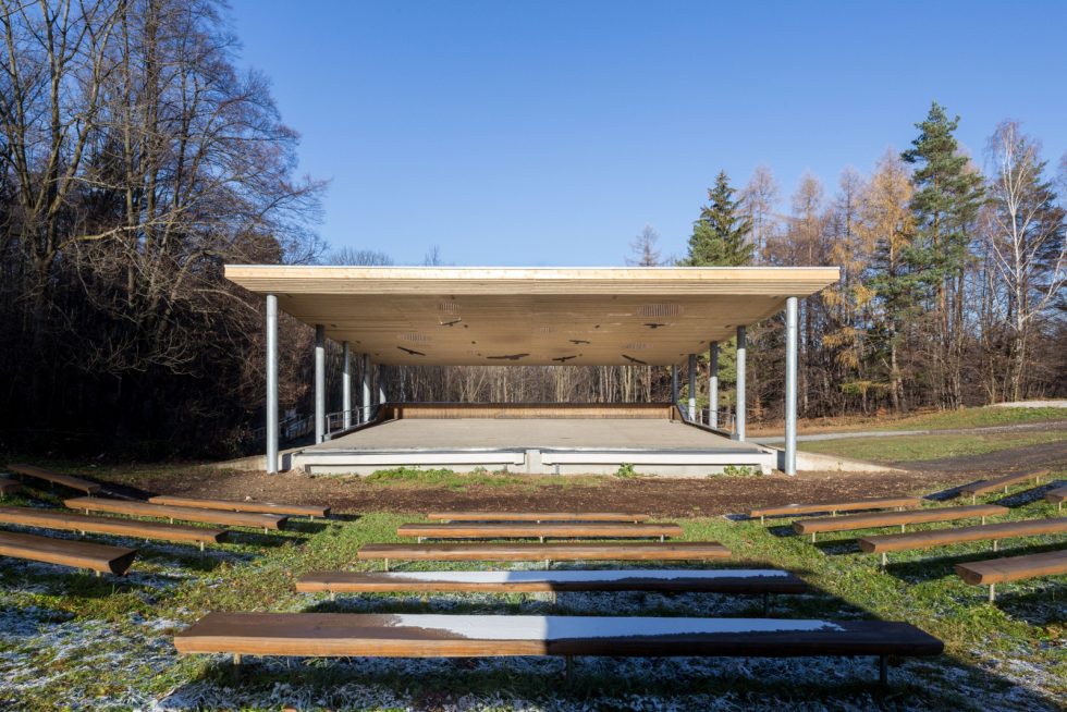 Amfiteátr na Horečkách bylo tradiční kulturně společenské místo, jehož význam upadl v 90 letech a prvním desetiletí 21 století. Budova v naprosto nevyhovujícím stavu, zarostlá zelení byla v roce 2012 očištěna a obložena fasádou ze surových latí a obnovena byla také dřevěná paluba.