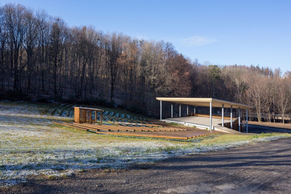 V budově amfiteátru jsou šatny pro účinkující, sklad a hygienické zázemí.
